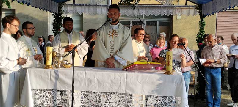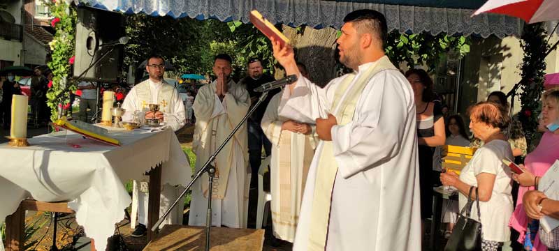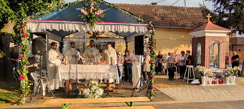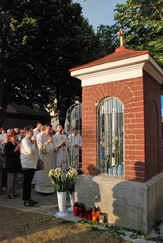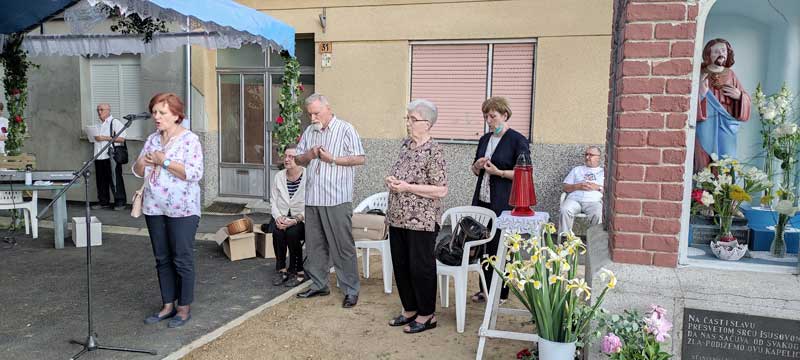 Tradicionalno večernje euharistijsko slavljenje svetkovine Presvetog Srca Isusova uz zavjetnu kapelicu, posvećenu Srcu Isusovu (1. lipnja 1936. godine na raskrižju ulica Psunjske i Čvrsničke) u našoj je župi Uzvišenja sv. Križa održano 11. lipnja sa župljanima i u zajedništvu s redovnicama Družbe Sestre naše Gospe te vjernicima osječkih župa.
