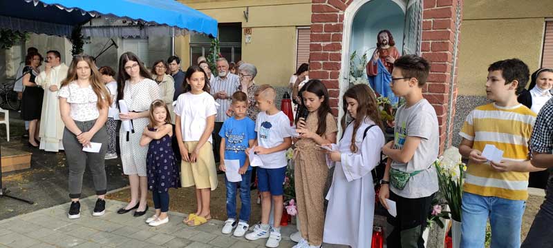 Malenima, koji su recitirali u ime župe, Biblije za djecu uručila je Kristina Reba. U završnici svetkovanja, praćenoga proljetnom kišom i suncem, župljani su se zadržali pred kapelicom ufajući se u Presveto Srce Isusovo, a mlitva se nastavlja i dalje s početkom u 19.30 sati do kraja lipnja uz kapelicu pod lipom.